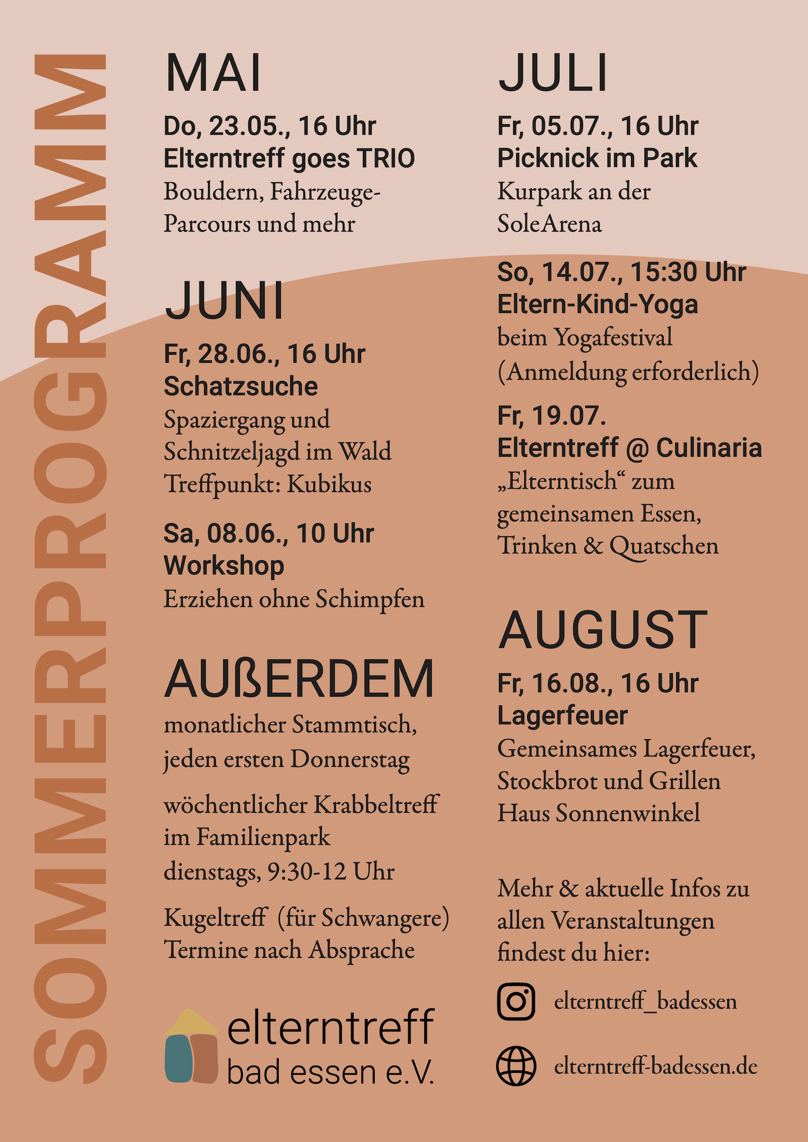 Wir arbeiten derzeit an dem Sommerprogramm für 2026.